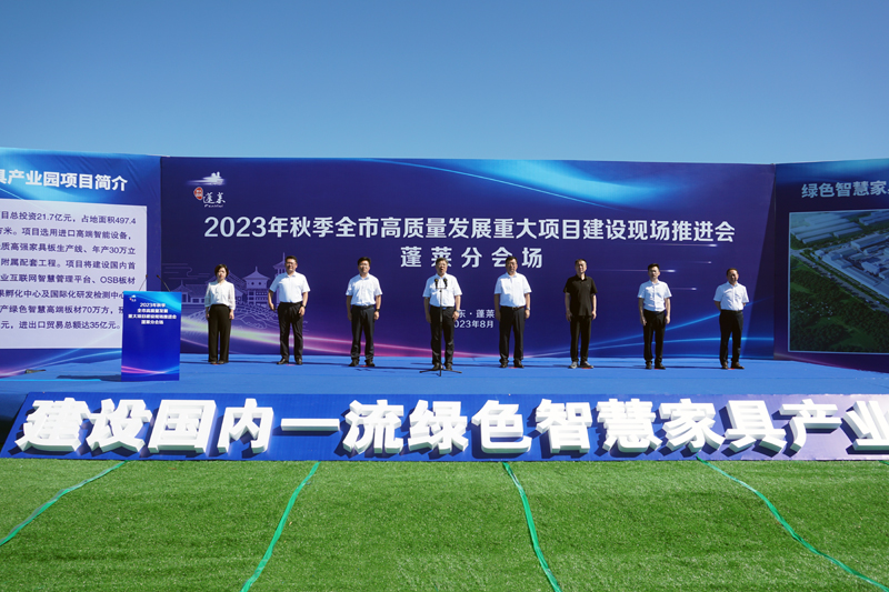 以高質(zhì)量項(xiàng)目建設(shè)推動高質(zhì)量發(fā)展。8月23日,煙臺舉行全市高質(zhì)量發(fā)展重大項(xiàng)目建設(shè)現(xiàn)場推進(jìn)會。在蓬萊分會場,智慧綠色高端家具板材二期項(xiàng)目舉行開工儀式。蓬萊區(qū)委書記林鈺濤、區(qū)長王長港及區(qū)委區(qū)政府領(lǐng)導(dǎo)班子其他成員出席推進(jìn)會,煙臺財(cái)金集團(tuán)董事長田序潤及新能智慧產(chǎn)業(yè)園全體員工共同參加活動。