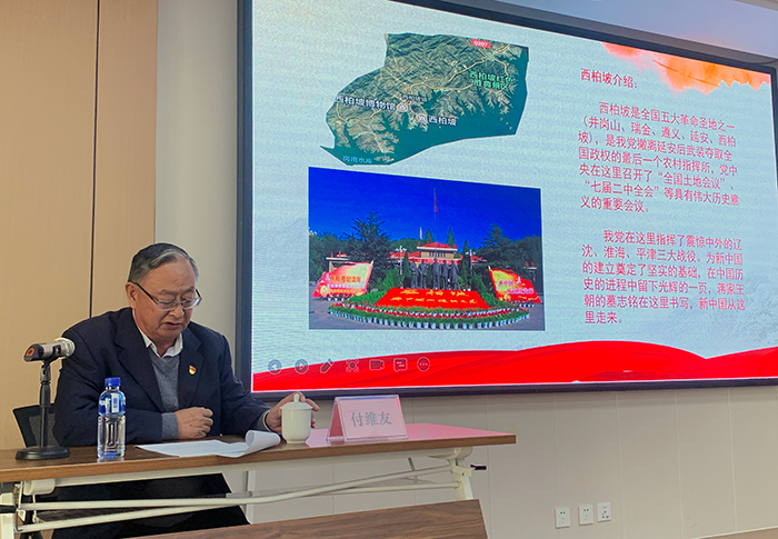 付維友同志圍繞中央工委進(jìn)駐西柏坡、全國(guó)土地會(huì)議在西柏坡召開、黨中央在西柏坡指揮三大戰(zhàn)役、中國(guó)共產(chǎn)黨七屆二中全會(huì)在西柏坡召開等4個(gè)方面進(jìn)行了詳細(xì)講解。