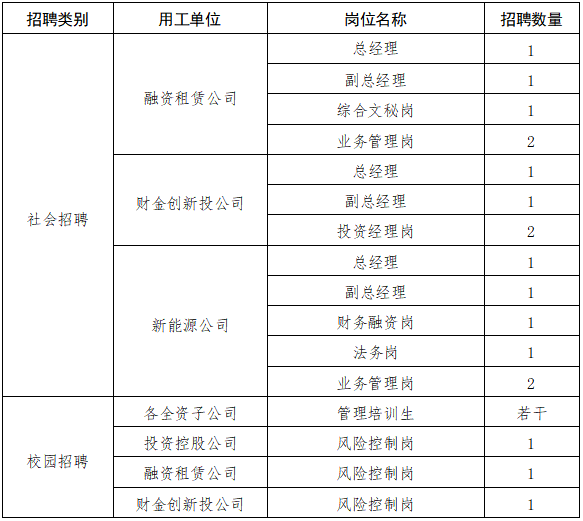 按照集團(tuán)實際用工需要,決定通過校園招聘和社會招聘,公開招聘各崗位人才數(shù)名,具體事項公告如下: