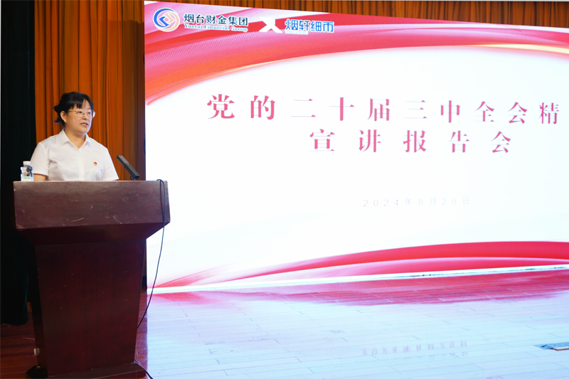 8月29日,煙臺(tái)財(cái)金集團(tuán)召開學(xué)習(xí)貫徹黨的二十屆三中全會(huì)精神宣講報(bào)告會(huì)。濱州醫(yī)學(xué)院馬克思主義學(xué)院形勢(shì)與政策教研室主任曹錫山作專題宣講,集團(tuán)黨委班子成員、外部董事、高級(jí)總監(jiān)及各部門、權(quán)屬企業(yè)干部職工等近150余人參會(huì)。